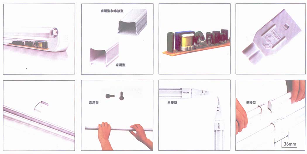 PHILIPS飛利浦最新推出的T5“如意”一體式的支架,其超小的體積能放入很狹小的燈槽中;另外,其人性化的諸多設(shè)計(jì),如安裝和接線方式能使展柜的設(shè)計(jì)更加靈活。更重要的是,T5“如意”一體式的支架具有雙重絕緣的特點(diǎn)(電器絕緣等級:
