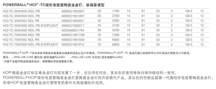 歐司朗 HCI-TC 35W/930; 70W/930 SHOPLIGHT陶瓷金鹵燈 歐司朗照明廣東惠州同為有限公司 歐司朗光源和歐司朗鎮(zhèn)流器/歐司朗調(diào)光鎮(zhèn)流器如配套使用,具有壽命長,顯色性能好...