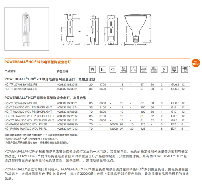 OSRAM HCI-TF 20W/830, 35W/830(進(jìn)口)陶瓷金鹵燈產(chǎn)品特點(diǎn)