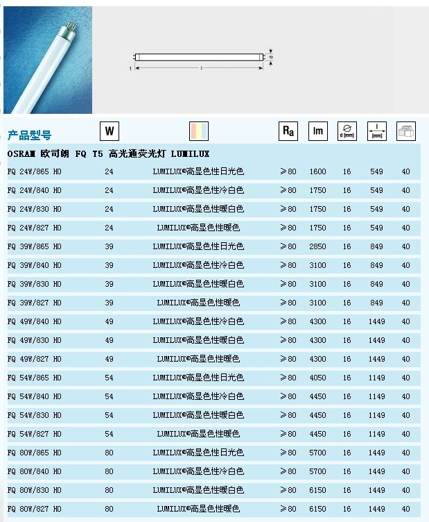 OSRAM 歐司朗T5 LUMILUX HO 24W 39W 進口 高光通直管熒光燈 惠州市同為光源電子有限公司 Towway Lamp Technology Co., Ltd ...