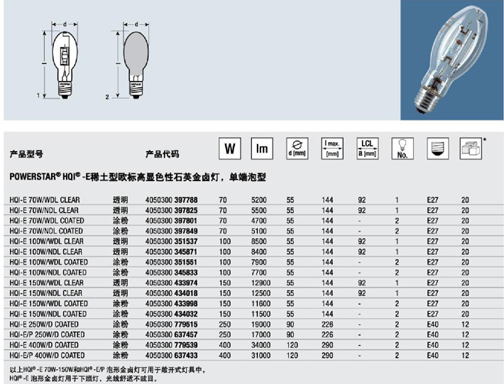 ·面向中端市場,作為客戶從使用HIT-T石英單端金鹵燈到HCI-T單端陶瓷金鹵燈光源的中間過渡選擇