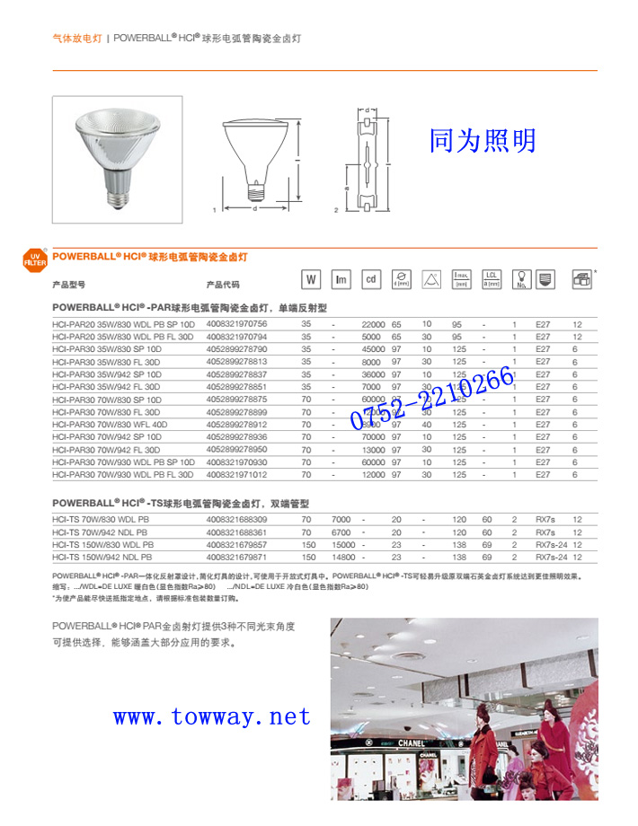 歐司朗HCI-TS 70W/830,942(進口)陶瓷金鹵燈歐司朗照明廣東惠州同為有限公司 專業代理 德國OSRAM(歐司朗)光源、電器。PHILIPS(飛利浦)光源,電器、等名牌照明產品,以經銷批...