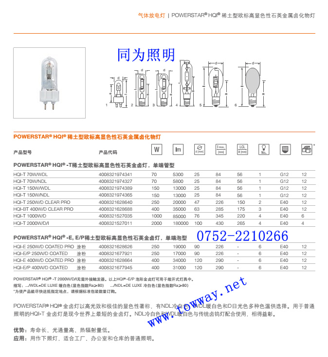 歐司朗 OSRAM HQI-T 150W/WDL 陶瓷金鹵燈產品特點