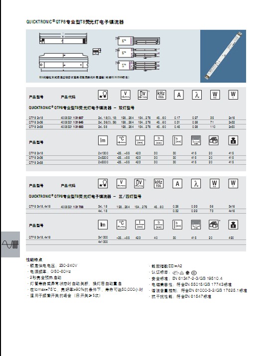 - 產品型號 歐司朗 QTP8 1x36 T8 專業型熒光燈電子鎮流器