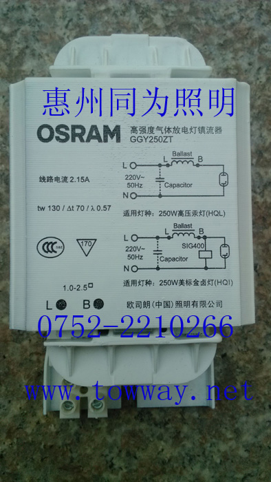 歐司朗 GGY250ZT 阻抗電感鎮(zhèn)流器 聯(lián)系電話:0752-2210266...
