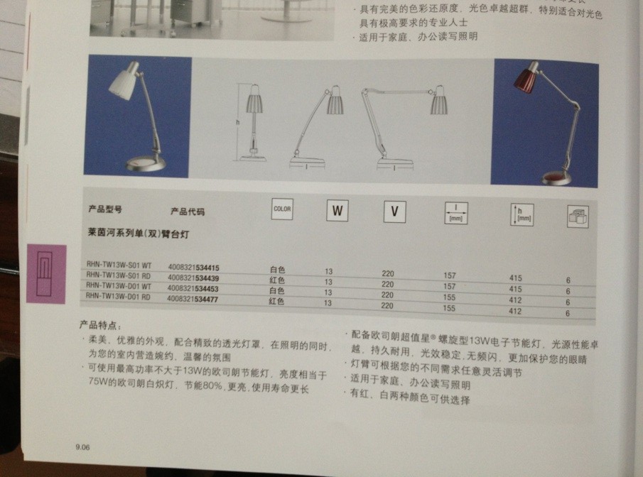 歐司朗 萊恩河 RHN-TW13W-S01 WT單臂 臺燈 聯系電話:0752-2210266...