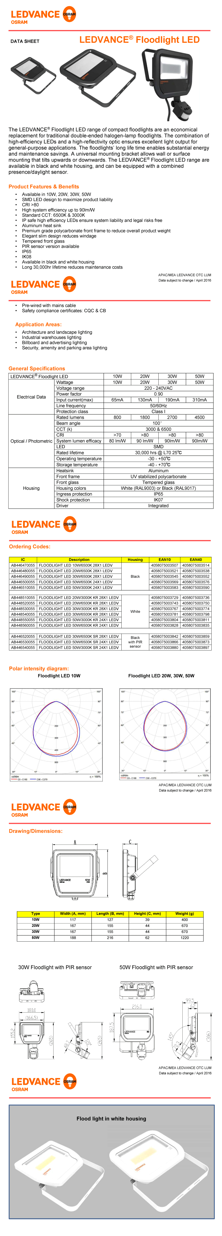 FLOODLIGHT LED 10W-6500K FLOODLIGHT LED 20W-6500K FLOODLIGHT LED 30W-6500K FLOODLIGHT LED 50W-650...