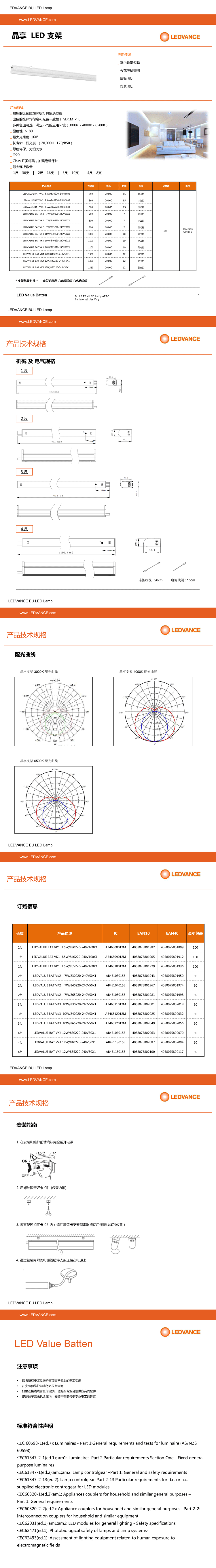 LEDVANCE晶享LED支架 LEDVALUE BAT 3.8W/7W/10W/12W/14W/830/840/865...