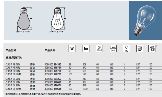 歐司朗60W E27 標準A型燈泡磨砂透明