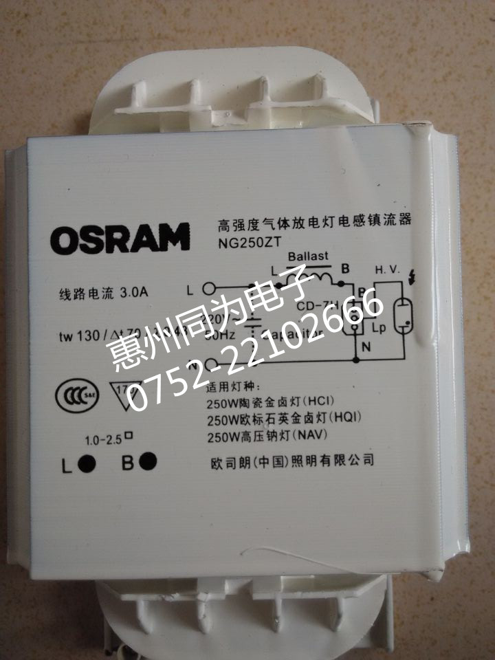 歐司朗 NG250ZT 抗阻電感鎮(zhèn)流器 聯(lián)系電話:0752-2210266...