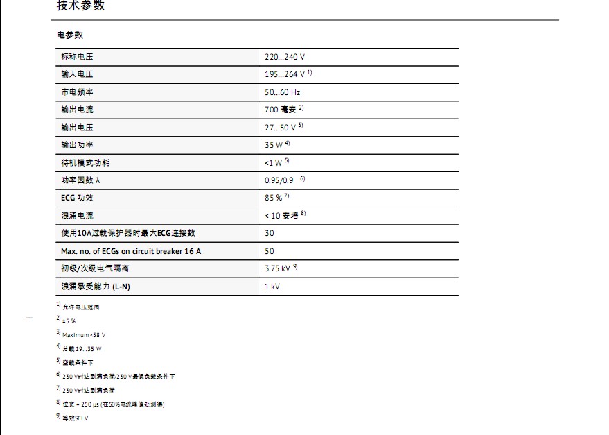- 產品型號 歐司朗 OTe 35/220-240/700 PC 驅動電源
