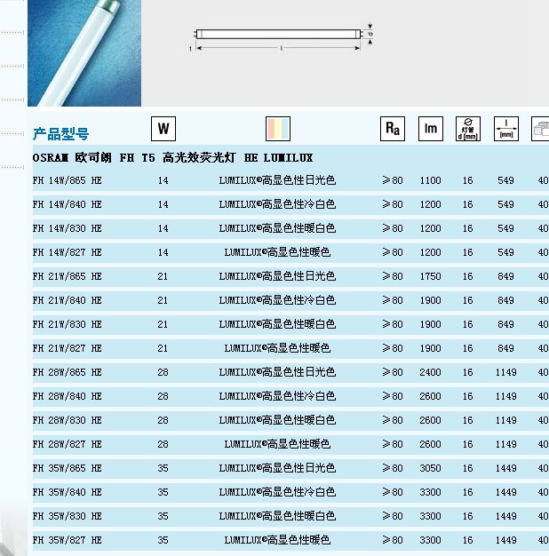 - 產品型號 歐司朗 T5 HE 14W 21W LUMILUX 高光效直管熒光燈 (進口