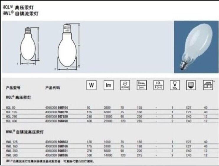 歐司朗 OSRAM HWL GYZ 500W E40 自鎮(zhèn)流汞燈