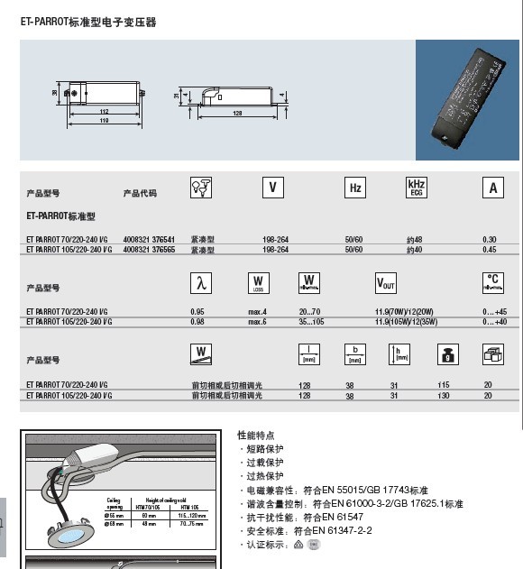 - 產品型號 歐司朗 ET-P 60/220-240 調光型電子變壓器