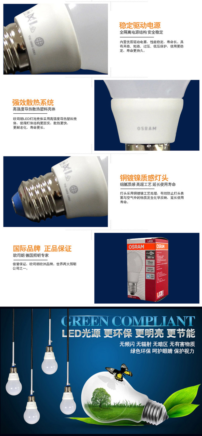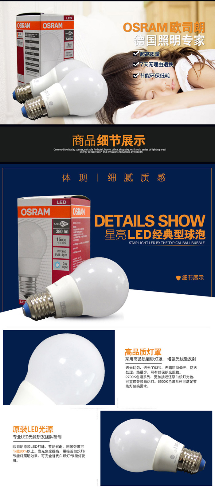 - 產(chǎn)品型號(hào) OSRAM 星亮 7.5W/827 7.5W/865 A型球泡磨砂 E27