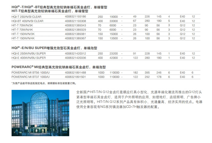 面向中端市場,作為客戶從使用HIT-T石英單端金鹵燈到HCI-T單端陶瓷金鹵燈光源的中間過渡選擇,配合客戶從配套電感鎮(zhèn)流器的使用習慣向配套電子鎮(zhèn)流器的使用習慣過渡,倆種功率、兩種光色滿足室內(nèi)使用的需要,10000小時平均壽命配合室內(nèi)裝修快速更換的步伐。配合客戶從配套電感鎮(zhèn)流器的使用習慣向配套電子鎮(zhèn)流器的使用習慣過渡,倆種功率、兩種光色滿足室內(nèi)使用的需要,10000小時平均壽命配合室內(nèi)裝修快速更換的步伐。