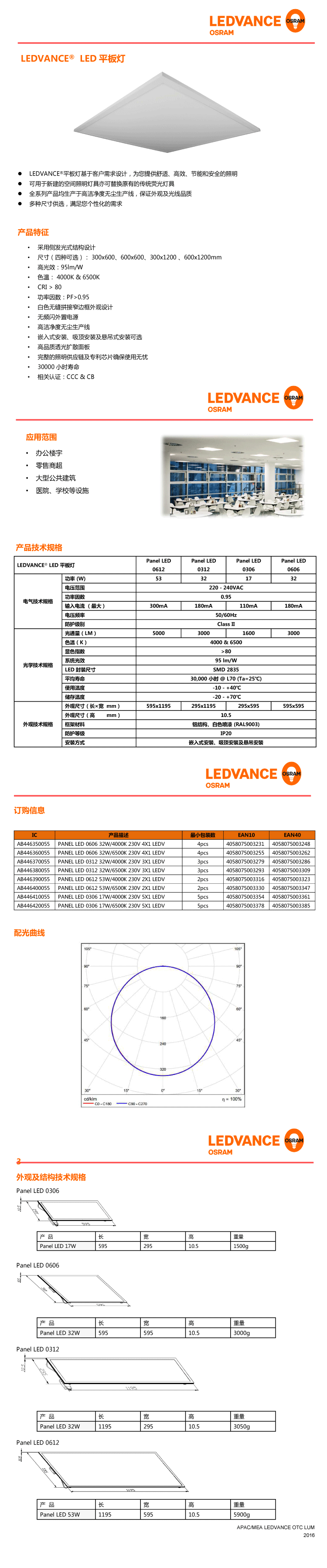 歐司朗OSRAM LEDVANCE PANEL LED 0606 32W/53W/4000K/6500K...